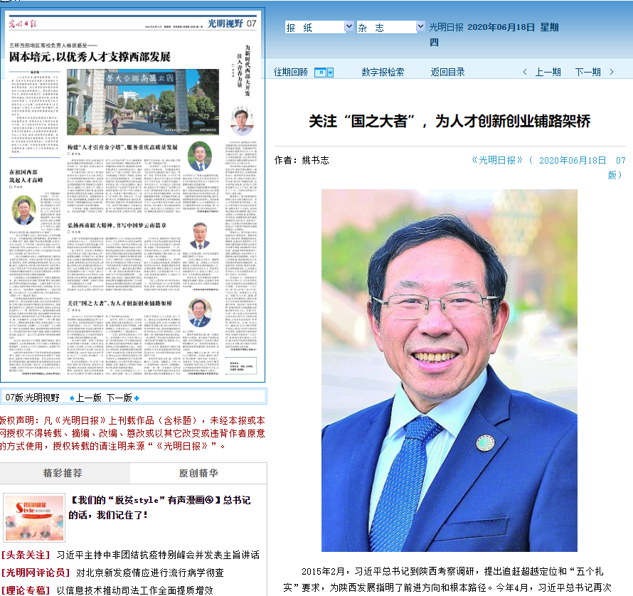 《光明日?qǐng)?bào)》06月18日“光明視野”刊發(fā)我校黨委書(shū)記姚書(shū)志署名文章《關(guān)注“國(guó)之大者”,為人才創(chuàng)新創(chuàng)業(yè)鋪路架橋》,闡述了陜西科技大學(xué)踐行“西遷精神”,大力實(shí)施人才強(qiáng)校戰(zhàn)略,以精神凝聚人、以事業(yè)吸引人、以政策激勵(lì)人、以環(huán)境鼓舞人,廣納四海英才,引導(dǎo)和激勵(lì)師生積極投身新時(shí)代西部大開(kāi)發(fā),在祖國(guó)最需要的地方建新功、立新業(yè)。