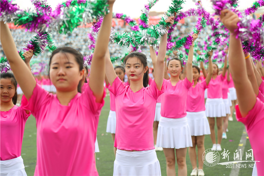 由近千名大學(xué)生表演的花環(huán)舞、功夫扇和大型團(tuán)體操剛?cè)岵?jì)、活力四射,突出體現(xiàn)了青年元素、陽光體育和全民健身,將開幕式的氣氛推向了高潮。