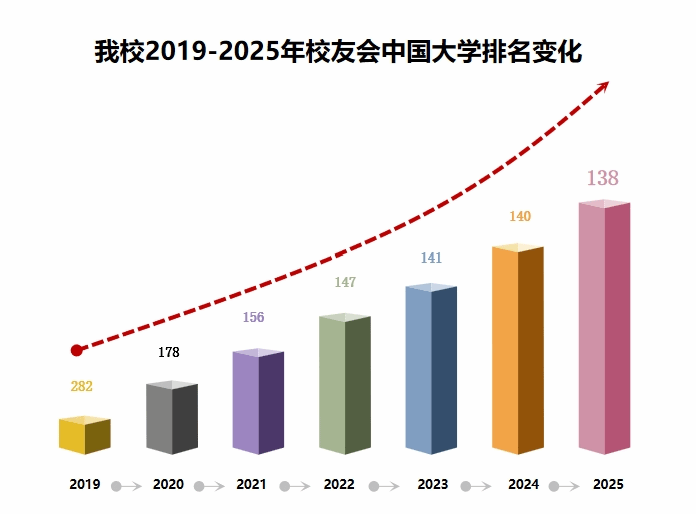 1月6日,艾瑞深中國校友會網(wǎng)發(fā)布校友會2025中國大學排名榜單,我校綜合排名位居全國第138位,實現(xiàn)六連升。標志著我校在第三次黨代會確立的“三步走”復(fù)興期建設(shè)中邁出了堅實步伐,彰顯了學校近年來各項事業(yè)的蓬勃發(fā)展。