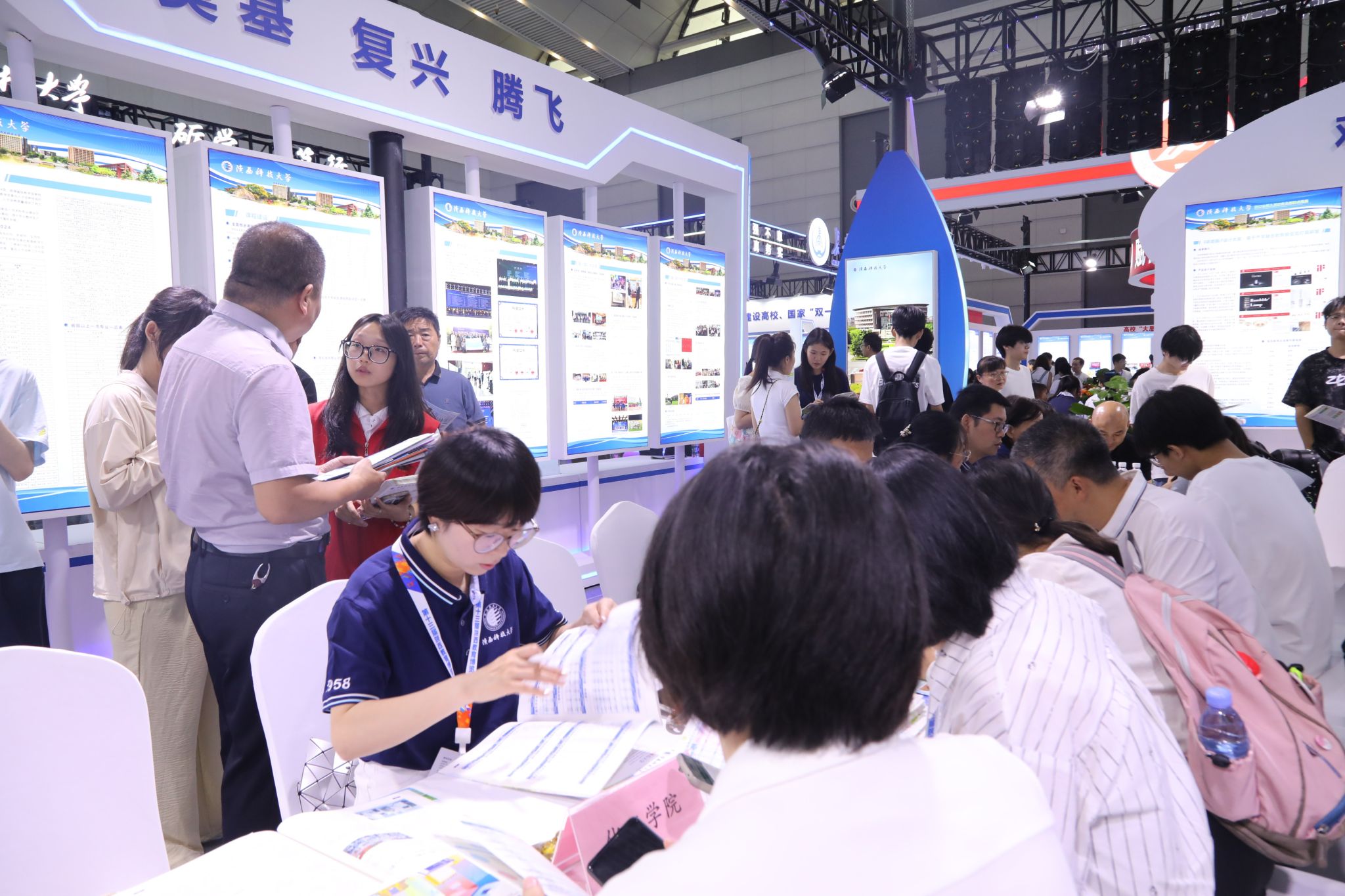 本屆博覽會以“AI賦能教育發(fā)展,推動教育強省建設(shè)”為主題。學(xué)校展區(qū)緊扣主題,通過展板、視頻、實物和互動講解等方式,全面呈現(xiàn)了學(xué)校專業(yè)特色、科研創(chuàng)新實力,吸引了眾多考生、家長駐足咨詢。
