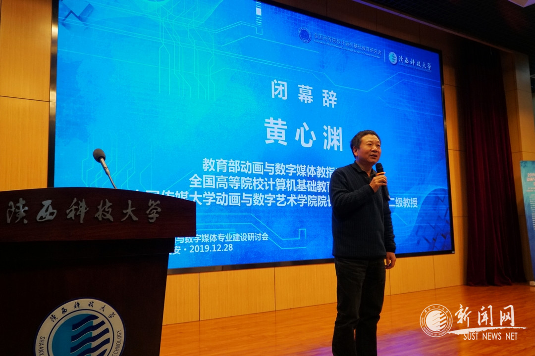 最后,教育部動畫與數(shù)字媒體教指委秘書長、全國高等院校計(jì)算機(jī)基礎(chǔ)教育研究會會長、中國傳媒大學(xué)黃心淵教授致閉幕詞。他由與我校動畫專業(yè)知名校友郝杰的多年交往談起,對我校在年底如此特殊的時(shí)節(jié)能夠順利舉辦這樣隆重的盛會表示贊賞;肯定此次大會規(guī)模之大、信息之廣、人員之多,是業(yè)界、創(chuàng)作、產(chǎn)業(yè)和學(xué)術(shù)、教學(xué)的完美融合,也是一場相互推動、相關(guān)激活的深入專業(yè)對話與思想碰撞,必將對我國雙一流背景下動畫與數(shù)字媒體專業(yè)建設(shè)發(fā)揮積極作用。
