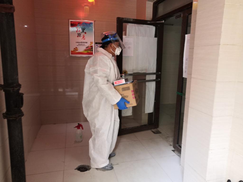 第一個(gè)讓他感動(dòng)的是賈佰平師傅。疫情防控一開(kāi)始,賈師傅一肩扛下了隔離區(qū)保潔、通勤管理的全部工作,成為隔離區(qū)143戶311名教職工及家屬身邊“最親近的人”。他每天早上7點(diǎn)上班,先密封處理完整樓住戶的垃圾,再仔細(xì)地為所有樓道打掃衛(wèi)生、消毒殺菌。熱心的賈師傅還義務(wù)充當(dāng)了大家的“黃馬甲”“快遞員”,送到隔離區(qū)外的快遞、蔬菜水果等生活用品,全部由他送上門,幾趟跑下來(lái),防護(hù)服里面就是一身汗。張建軍說(shuō),“賈師傅身處隔離區(qū),每天上下奔忙,從沒(méi)抱怨過(guò)。”