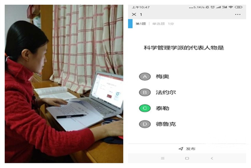經(jīng)濟(jì)與管理學(xué)院羅文春老師:為了確保同學(xué)們積極參與在線教學(xué),增加課堂的互動(dòng)性與趣味性,我?guī)缀跬品酥暗慕虒W(xué)設(shè)計(jì),每一章節(jié)設(shè)置了單選題、多選題、投票、主觀題等。雖然這樣備課加大了自己的勞動(dòng)量,但只要想到有利于同學(xué)們學(xué)習(xí),這一點(diǎn)辛苦微不足道。期待疫情早日結(jié)束,期待早日與同學(xué)們相聚于美麗科大的教室。