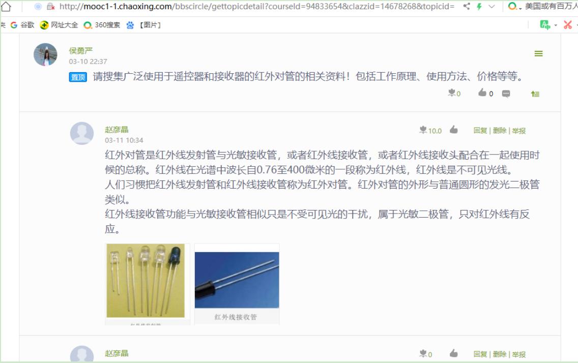 還充分利用學(xué)習(xí)通的“主題討論”功能,精心設(shè)置開放性的討論話題,如“請(qǐng)介紹廣泛使用于遙控器和接收器的紅外對(duì)管的工作原理、使用方法、價(jià)格等”、“如何用數(shù)字式萬(wàn)用表判別二極管和三極管的引腳?”等等。讓學(xué)生通過課外自主學(xué)習(xí)、自主探究來參與討論、表達(dá)觀點(diǎn),教師則通過“積分+點(diǎn)贊”鼓勵(lì)學(xué)生積極參與,學(xué)生獲得的積分和點(diǎn)贊作為課程過程性評(píng)價(jià)的指標(biāo)之一。