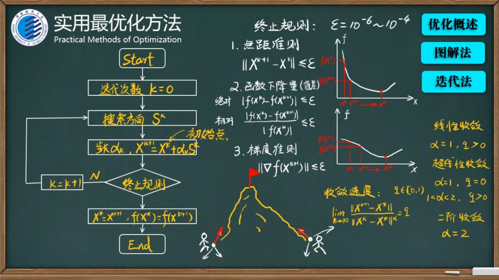 《實用最優(yōu)化方法》課程的特點是數(shù)學公式和推導很多,為了讓學生更快理解掌握數(shù)學方法,一般公式推導過程都用手寫筆直接書寫,而盡量不采用PPT翻頁,手寫雖然會占用時間,但是給學生充分的時間思考,有意拉慢課堂節(jié)奏的同時,也給學生一種課堂黑板板書教學的學習體驗。本課程的另一個特點是計算機編程工具的使用,所以利用手寫板,一步步推導公式加上計算機編程自動計算,一慢一快,把學生的“視野”就拉開了。