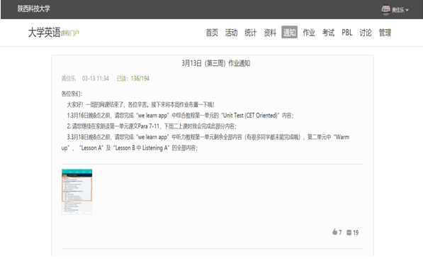1.課前一個通知–“通知”是在線教學中極具儀式感的功能之一,它可以協(xié)助教師在課前發(fā)布課程大綱、教學目的及預習任務(如需完成的視頻賞析和前測習題等),讓學習者為線上學習做好充分準備。建議大家在發(fā)布通知的同時注意教師措辭,盡量做到簡潔明了,如果條件允許的話可以用“任務清單”的形式發(fā)布,增強預習任務的清晰度及可操作性。
