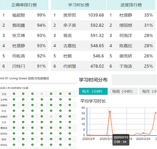 課后反饋及各類相關拓展性活動是保證線上教學質量的重要手段,《大學英語》教改團隊當前使用的多類型智慧教學平臺均具有多終端匹配的教學管理系統(tǒng),可以為我們提供全方位的數據服務。