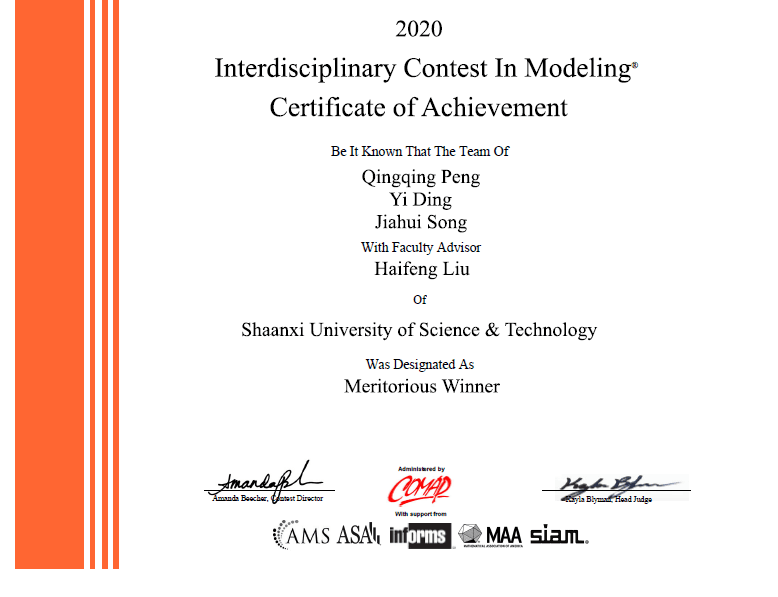 我校學(xué)生獲2020年國際大學(xué)生數(shù)學(xué)建模競賽一等獎等多項獎勵