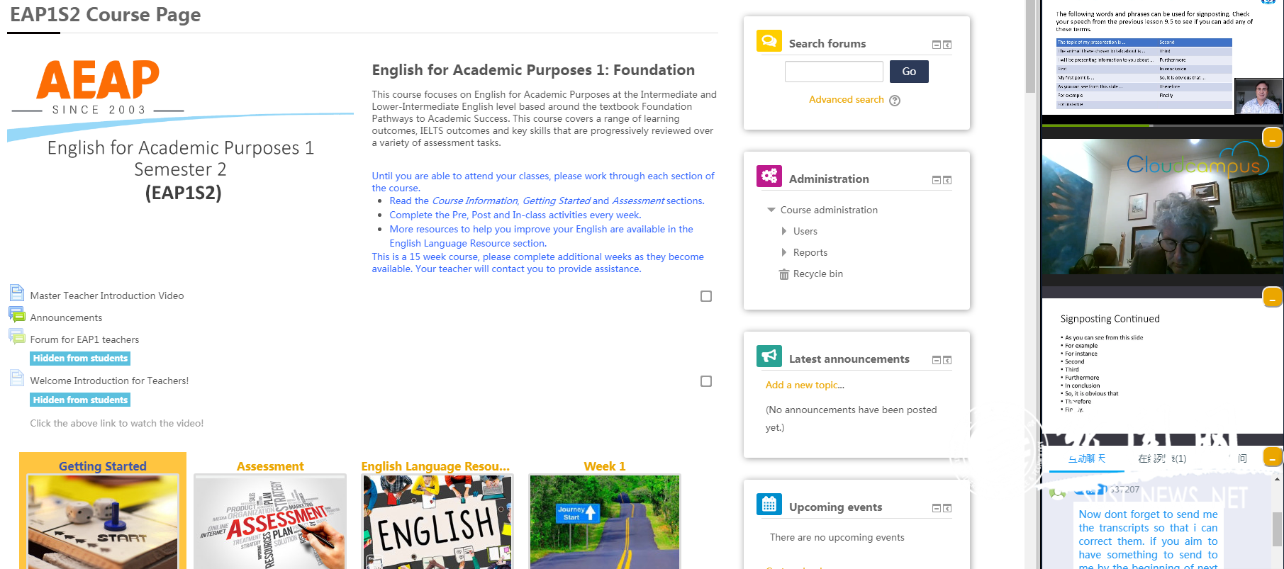 云校園教學平臺是阿爾斯特學院線上英語教學的一大特色。云校園教學資源豐富,包括課程學習資源、準備導程,考核說明等。課程資源囊括聽、說、讀、寫訓練,不僅讓線上英語教學生動有趣,更能全面提高學生學術英語水平。