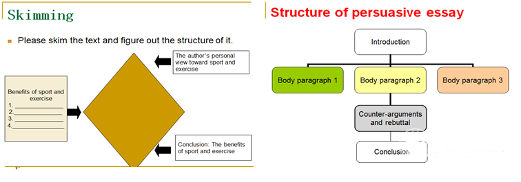 閱讀和寫作教學——結合云校園上多種形式的閱讀練習材料,教師帶領學生進行了包括精讀、泛讀等閱讀技巧的訓練,針對閱讀材料中涉及的話題,引導學生開展討論,培養(yǎng)學生的批判性思維。在對寫作的訓練上,教師積極開展輔助練習,指導學生從段落入手寫作,并及時給予點評和修改意見,有效的提高了學生英語寫作能力。