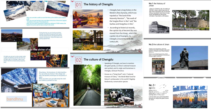 線上教學期間,外教還組織學生制作中國城市旅游宣傳手冊,創(chuàng)新的作業(yè)布置,不僅讓學生在興趣中提高了英語概括以及口語展示能力,也讓外教更加了解中國不同城市獨具特色的風土人情。教師與學生教學相長,互相學習,互相交流,共同進步。