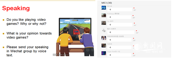 口語練習——口語練習是在線教學面臨的一個難題。為此,阿爾斯特學院英語教師充分利用了云校園課堂直播、微信及QQ實時互動,給予學生更多的口語發(fā)言機會。課上,教師發(fā)布口語練習題目,鼓勵學生通過連麥發(fā)言或以語音方式發(fā)到班級群,并做實時點評。課下,教師組織學生開展口語測試,要求學生以錄制視頻的方式就指定話題做3分鐘演講。此外,學生還通過QQ平臺舉辦了以“消費者權益保護”為主題的網絡英語在線辯論賽,多角度、多層面學習英語。