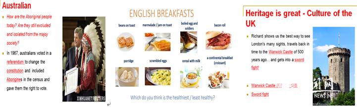 阿爾斯特英語教學團隊由多名中、外教組成。擁有不同文化背景的教師為教學注入了不同的文化特色。例如:來自英國的外教Kevin和澳大利亞的外教Hugh分別將兩國的飲食特色及文化融入了課堂;中教也根據不同章節(jié)的教學主題,為學生補充相關的文化背景知識。這不僅開拓了學生的國際化視野,也培養(yǎng)了學生多文化角度看待問題的能力。