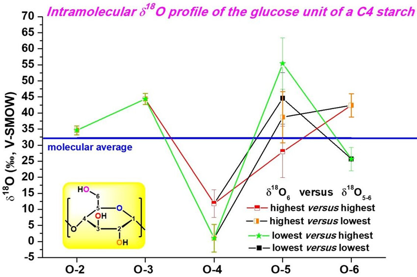 C4來(lái)源植物淀粉葡萄糖單元分子內(nèi)氧同位素分布模式