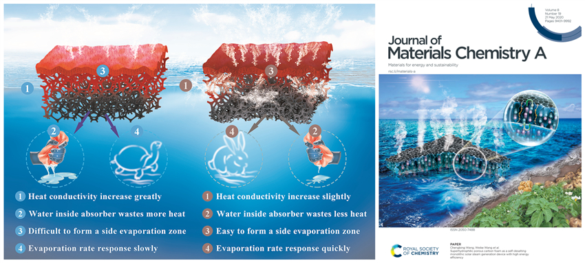 學(xué)術(shù)骨干王成兵教授團(tuán)隊(duì)采用“旋轉(zhuǎn)-填充”新組裝法合成一種生物安全性高、機(jī)械輕度大、自漂浮時間長的墨魚汁基太陽能驅(qū)動界面蒸發(fā)器件,成果發(fā)表在國際知名期刊Nano Energy上;其關(guān)于土豆碳基材料應(yīng)用于界面蒸發(fā)的研究成果發(fā)表于國際知名期刊Journal of Materials Chemistry A。