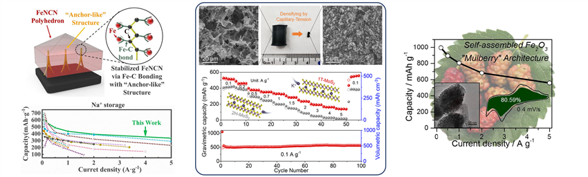 黃劍鋒教授領(lǐng)銜的“無機(jī)材料綠色制造與功能化應(yīng)用團(tuán)隊(duì)”在鐵碳二亞胺高性能鈉離子電池負(fù)極材料和致密1T-MoS2/石墨烯鉀離子電池負(fù)極材料研究方面取得重要進(jìn)展,兩項(xiàng)成果均發(fā)表于材料領(lǐng)域國際頂級期刊Advanced Functional Materials;關(guān)于量子點(diǎn)自組裝桑葚狀Fe2O3鋰離子電池負(fù)極材料和三維層狀自支撐多功能電催化劑兩項(xiàng)成果發(fā)表于國際知名期刊Chemical Engineering Journal;關(guān)于合成高活性S22-鍵密集Ni3S2/VS4納米棒陣列電催化劑研究成果發(fā)表于國際知名期刊Nanoscale。