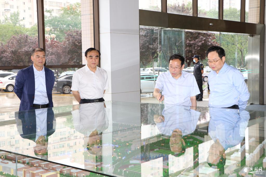 校黨委書記姚書志為西安醫(yī)學(xué)院黨委書記劉嶺、院長楊帆講解我校沙盤模型