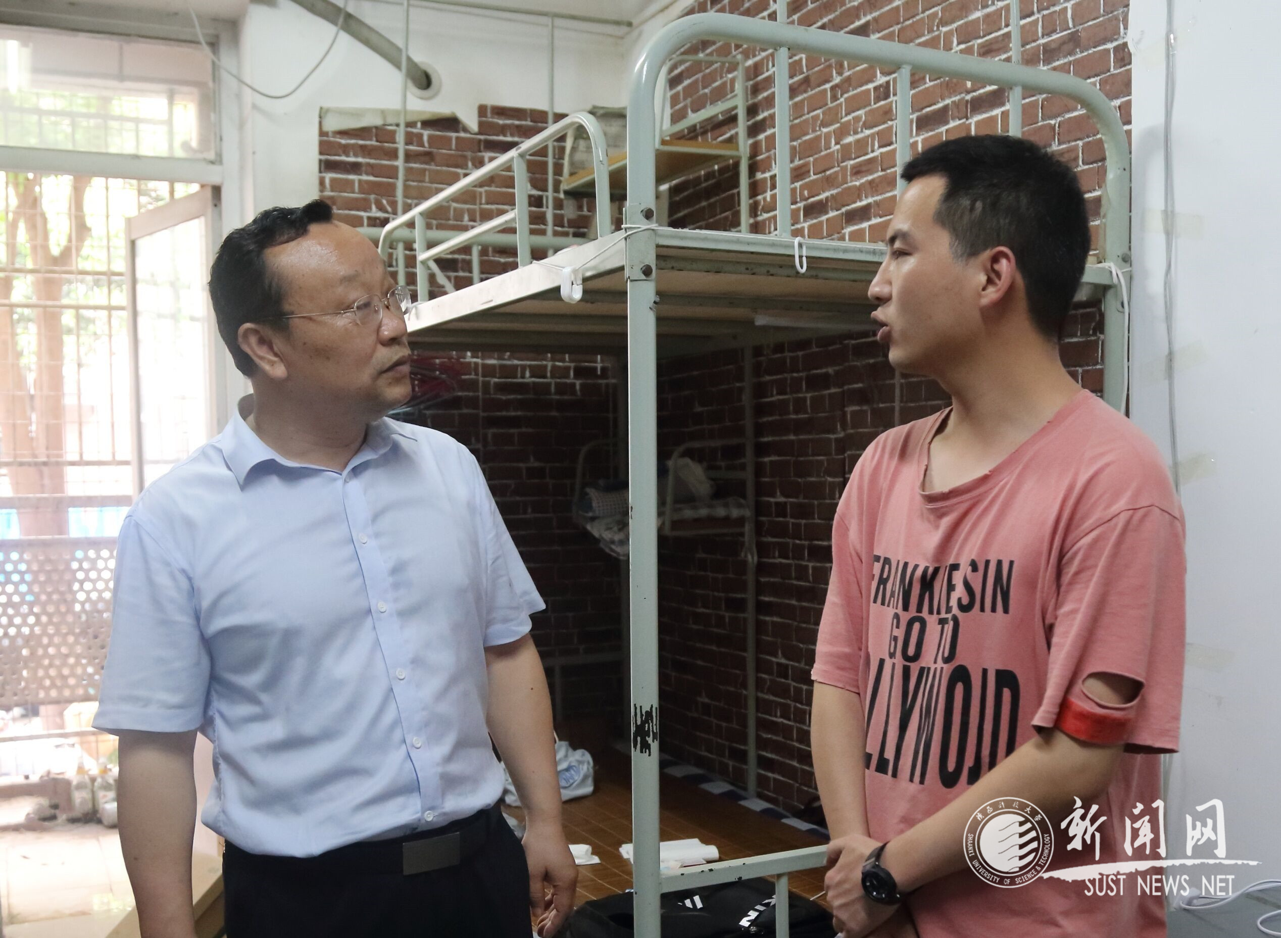 為確保畢業(yè)生離校工作有序開(kāi)展,7月21日下午,校黨委副書(shū)記王道安深入學(xué)生公寓檢查畢業(yè)生離校工作,對(duì)嚴(yán)格落實(shí)學(xué)校關(guān)于疫情防控的安排部署、優(yōu)化學(xué)生畢業(yè)離校工作提出了要求。學(xué)工部相關(guān)負(fù)責(zé)人陪同檢查。