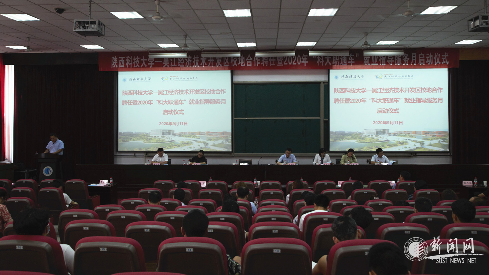 9月11日下午,我校召開陜西科技大學--吳江經濟技術開發(fā)區(qū)校地合作聘任暨2020年“科大職通車”就業(yè)指導服務月啟動儀式。會前,校黨委副書記王道安會見了吳江經濟技術開發(fā)區(qū)管委會副主任查旭東一行,我校學生就業(yè)指導中心常務副主任張凱凱、全體畢業(yè)班輔導員、學生代表參加儀式。儀式由學生就業(yè)指導中心主任助理景馬良主持。