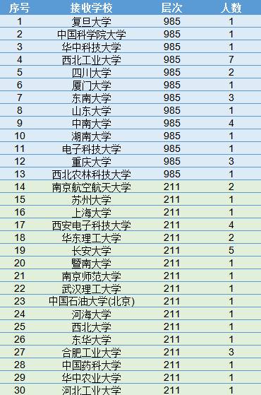 推薦優(yōu)秀應屆本科畢業(yè)生免試攻讀研究生工作是研究生招生工作的重要組成部分,是多元化優(yōu)秀生源選拔的重要途徑,是學校綜合實力的體現(xiàn)。最終,我校共有55名優(yōu)秀應屆本科畢業(yè)生推薦到“雙一流”建設高校攻讀碩士研究生,其中27名推免生被13所985高校接收,28名推免生被17所211高校接收。另有141名推免生被我校13個培養(yǎng)學院接收。