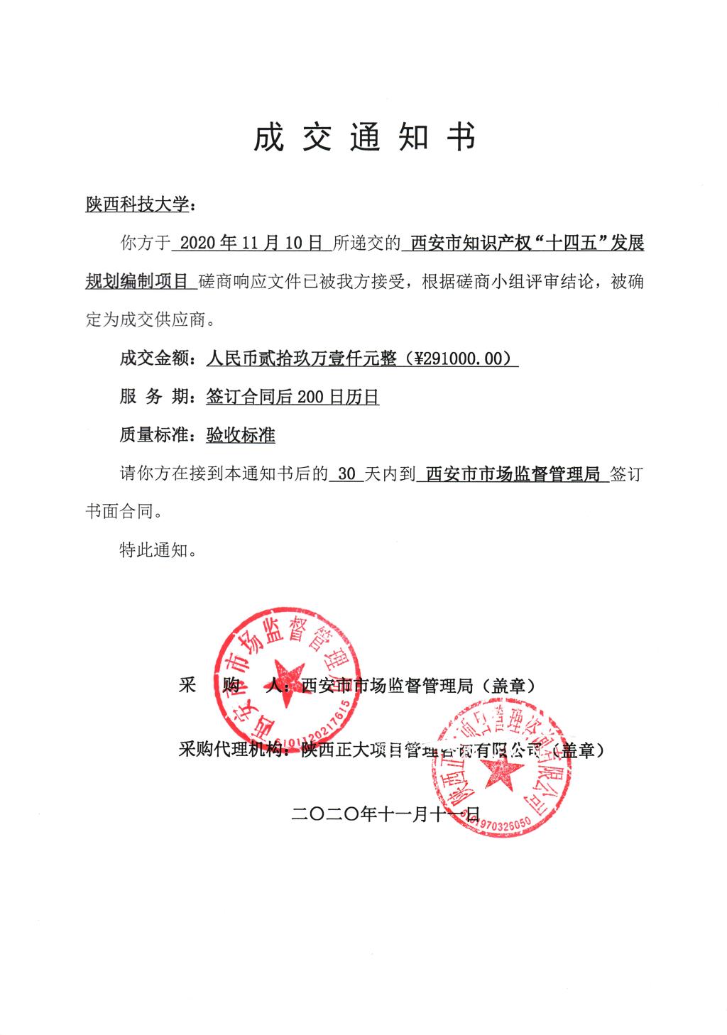 近日,西安市知識(shí)產(chǎn)權(quán)“十四五”發(fā)展規(guī)劃編制項(xiàng)目成交結(jié)果正式公告,經(jīng)濟(jì)與管理學(xué)院馬廣奇教授團(tuán)隊(duì)成功中標(biāo)。