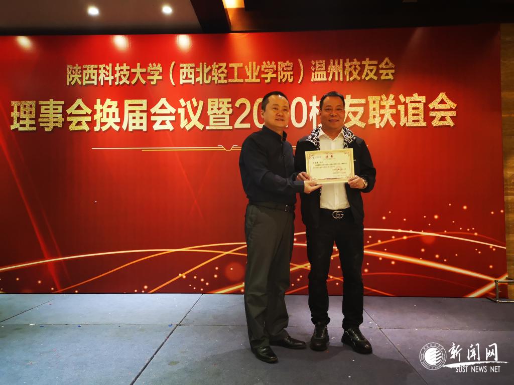 大會(huì)選舉了包括會(huì)長(zhǎng)李建孝(皮革專業(yè)1993級(jí))、秘書長(zhǎng)徐浩(食品專業(yè)1989級(jí))等人組成的理事會(huì)。李學(xué)軍代表學(xué)校為李建孝會(huì)長(zhǎng)頒發(fā)聘書。