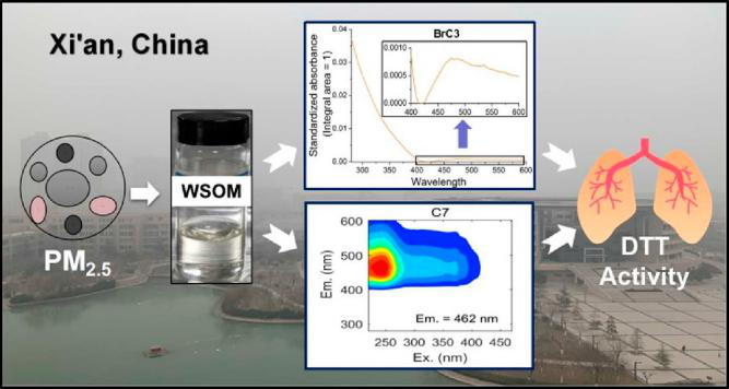“Oxidative potential of water-soluble matter associated with chromophoric substances in PM2.5over Xi'an, China (西安地區(qū)PM2.5中與發(fā)色團(tuán)物質(zhì)相關(guān)的水溶性物質(zhì)的氧化潛能)”以有機(jī)化合物是大氣氣溶膠氧化潛能的重要貢獻(xiàn)者為背景,首次報(bào)道了中國(guó)西安市PM2.5中與發(fā)色團(tuán)物質(zhì)有關(guān)的水溶性有機(jī)物的氧化潛能。本團(tuán)隊(duì)定量分析了水溶性PM2.5中的二硫蘇糖醇(DTT)活性水平,以及DTT活性與光吸收和熒光性質(zhì)之間的關(guān)系。結(jié)果表明,DTT活性與有色水溶性有機(jī)物顯著相關(guān),其中我們確定了三種吸光物質(zhì)(BrC1-3)和八種熒光物質(zhì)(C1-8)。進(jìn)一步研究發(fā)現(xiàn),BrC3和C7幾乎占據(jù)了有色水溶性有機(jī)物的所有DTT活性,且分別因其長(zhǎng)吸收波長(zhǎng)和熒光發(fā)射波長(zhǎng)而與其他發(fā)色物質(zhì)有明顯區(qū)別。這一發(fā)現(xiàn)將有助于更好地解釋和理解吸光有機(jī)氣溶膠產(chǎn)生氧化活性的機(jī)理,并為通過(guò)光學(xué)特性來(lái)預(yù)測(cè)吸光有機(jī)氣溶膠氧化潛能的方法提供指導(dǎo)。全文鏈接:https://doi.org/10.1021/acs.est.9b01976