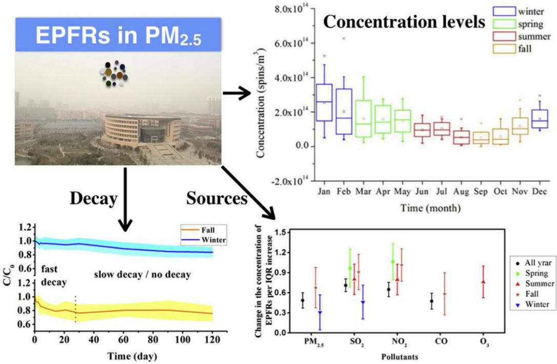 Chen, Q.*; Sun, H.; Wang, J.; Shan, M.; Yang, X.; Deng, M.; Wang, Y.; Zhang, L. Long-life type - The dominant fraction of EPFRs in combustion sources and ambient fine particles in Xi'an. Atmospheric Environment.2019, 219, 11705-11709.