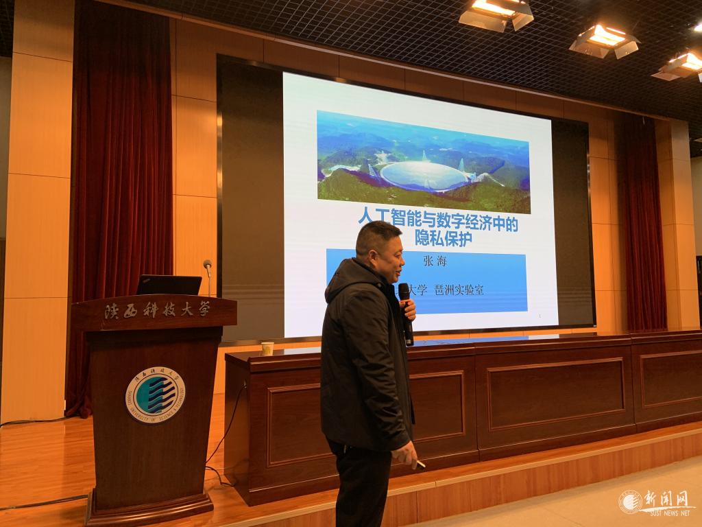 西北大學(xué)數(shù)學(xué)學(xué)院博士生導(dǎo)師張海教授以“人工智能與數(shù)字經(jīng)濟(jì)中的隱私保護(hù)”為題,首先簡(jiǎn)述人工智能與數(shù)字經(jīng)濟(jì)的發(fā)展現(xiàn)狀,其次通過(guò)智能制造、工業(yè)物聯(lián)網(wǎng)和智能政務(wù)等領(lǐng)域的實(shí)際案例,講述人工智能與數(shù)字經(jīng)濟(jì)的重點(diǎn)突破點(diǎn),并針對(duì)人工智能與數(shù)字經(jīng)濟(jì)關(guān)注的敏感數(shù)據(jù)隱私保護(hù)問(wèn)題,給出基于差分隱私技術(shù)高維數(shù)據(jù)分析、圖模型結(jié)構(gòu)學(xué)習(xí)等算法模型。