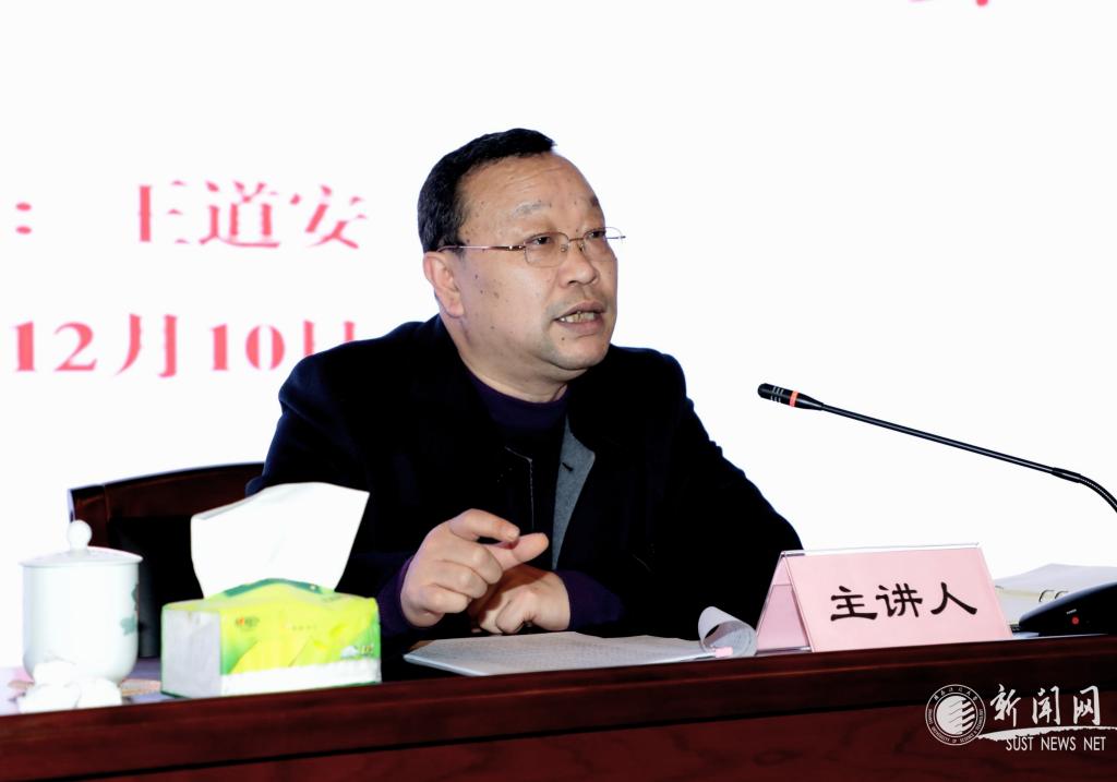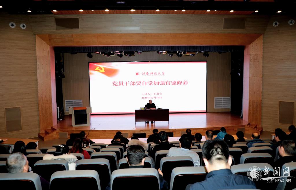 12月10日,校黨委副書記王道安以“黨員干部要自覺加強官德修養(yǎng)”為題給基層黨員干部講黨課,來自分管的統(tǒng)戰(zhàn)部、學工部、校工會、校團委、保衛(wèi)處、后勤服務集團等部門,聯(lián)系的食品與生物工程學院及生物工程系教工黨支部的60余名黨員干部聆聽了黨課。
