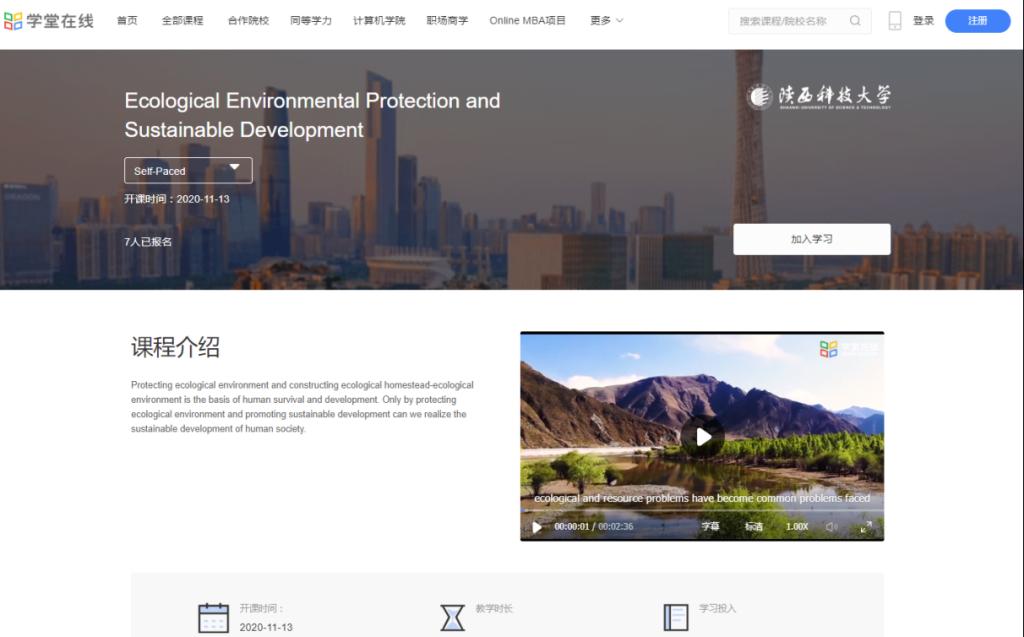 近日,由我校立項(xiàng)建設(shè)的全英文在線課程《Ecological Environment Protection and Sustainable Development》(生態(tài)環(huán)境保護(hù)與可持續(xù)發(fā)展)在“學(xué)堂在線”國內(nèi)平臺和國際平臺同步上線,正式向全球免費(fèi)開放。該課程由環(huán)境科學(xué)與工程學(xué)院郭軍康教授主講,團(tuán)隊(duì)成員包括魏婷、王羽琴、朱超和Haris Muhammad(巴基斯坦)等老師。