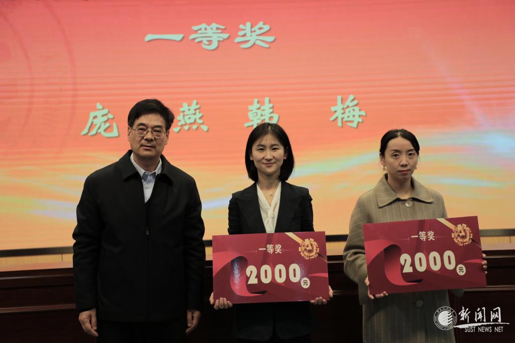 蒲永平宣讀了《陜西科技大學(xué)關(guān)于史勝楠同志專業(yè)技術(shù)職務(wù)任職資格的通知》,直接認定特等獎獲得者史勝楠具有副教授任職資格。