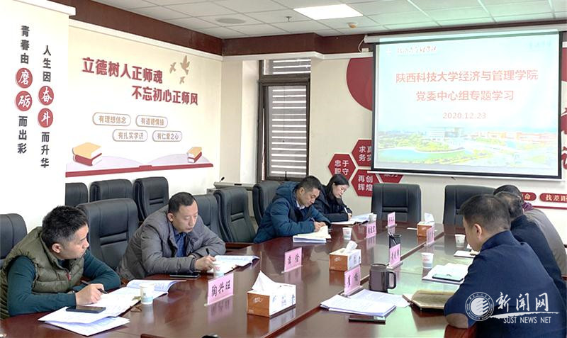 12月23日上午,經濟與管理學院黨委在人文樓A415召開理論中心組專題學習會議,深入學習黨的十九屆五中全會精神。校黨委委員、副校長黃劍鋒到會指導并講話,學院黨委中心組全體成員參加會議,辦公室主任、組織員列席會議。會議由學院黨委書記崔楠主持。