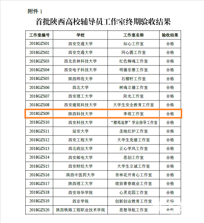 近日,中共陜西省委教育工委公布了首批陜西普通高等學(xué)校輔導(dǎo)員工作室終期驗(yàn)收結(jié)果,我?!袄蠲裙ぷ魇摇表樌ㄟ^驗(yàn)收。