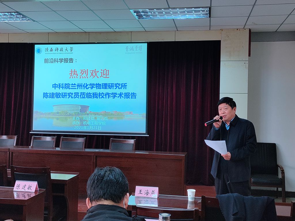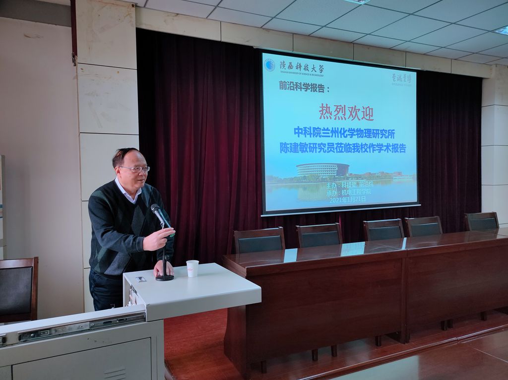 1月21日,應(yīng)機(jī)電學(xué)院邀請,中國科學(xué)院蘭州化學(xué)物理研究所陳建敏研究員做客我?!扒把乜茖W(xué)報告”,做了題為“潤滑耐磨表面工程高技術(shù)應(yīng)用研究”的學(xué)術(shù)報告、“關(guān)于申報國家自然科學(xué)基金項目之我見”的指導(dǎo)報告。報告會由陜西科技大學(xué)副校長王海燕主持,機(jī)電學(xué)院主要負(fù)責(zé)人,學(xué)校50余名教師參加了報告會。