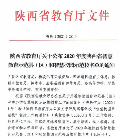 3月3日,陜西省教育廳發(fā)文公布了2020年度智慧校園示范校和培育校名單,我校獲批為2020年陜西省高等學(xué)?!爸腔坌@培育?!薄T擁?xiàng)工作首次在高校開展,旨在打造智慧校園建設(shè)標(biāo)準(zhǔn)高、智能化應(yīng)用效果好、信息化推動(dòng)教育現(xiàn)代化場景特色鮮明的示范性高校,引領(lǐng)我省高校邁入智慧教育新階段。