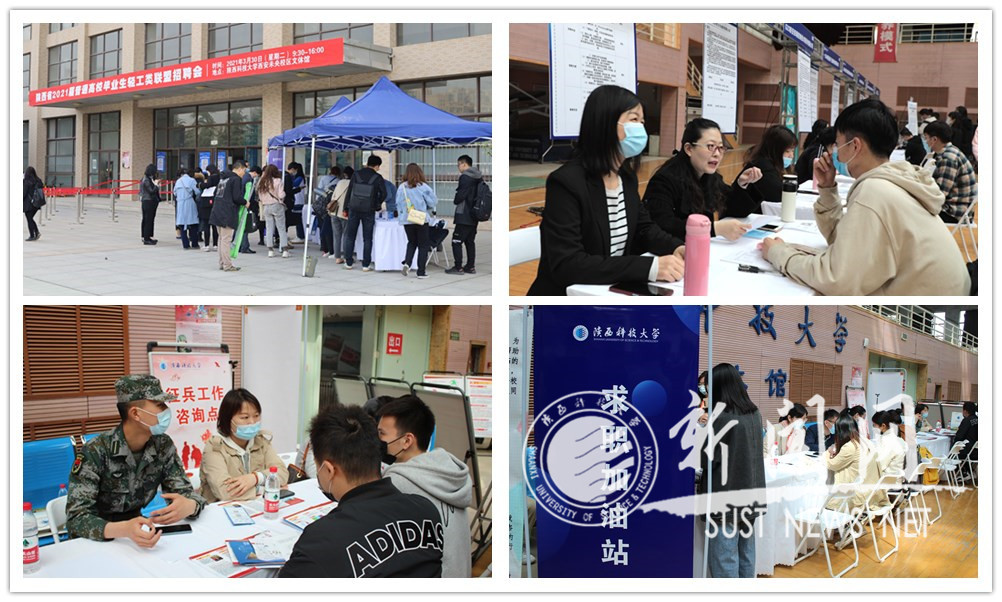 3月30日,由陜西省教育廳主辦,陜西省高等學校畢業(yè)生就業(yè)服務中心和我校承辦,相關高校聯(lián)辦的2021屆高校畢業(yè)生輕工類聯(lián)盟招聘會在我校文體館舉行。陜西省教育廳學生處二級調研員白煬、陜西省高等學校畢業(yè)生就業(yè)服務中心主任陳靖、部分聯(lián)辦高校就業(yè)工作負責人在我校學生就業(yè)指導中心負責人的陪同下深入招聘會現(xiàn)場與用人單位和畢業(yè)生親切交流,詳細了解用人單位人才需求狀況及畢業(yè)生求職情況。