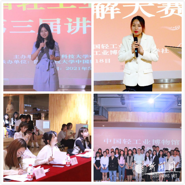 5月18日,博物館舉辦“黨史在我心”第三屆學(xué)生講解大賽,來(lái)自全校6個(gè)院的19名志愿講解員,聚焦建黨100周年,以小切口表現(xiàn)大主題,或追憶民族工業(yè)的奮斗歷史,或講述革命先烈、時(shí)代楷模的感人故事,激情講述了在黨領(lǐng)導(dǎo)輕工事業(yè)從站起來(lái)、富起來(lái)到強(qiáng)起來(lái)的偉大歷程和輝煌成就,充分展現(xiàn)了志愿者的良好精神風(fēng)貌。傳承紅色基因,踐行紅色使命,激勵(lì)科大學(xué)子在歷史中汲取智慧、汲取力量,進(jìn)一步增進(jìn)愛(ài)國(guó)愛(ài)黨之情。經(jīng)過(guò)激烈的角逐,教育學(xué)院的郭寶心和設(shè)計(jì)與藝術(shù)學(xué)院的劉家璇2位同學(xué)獲得講解大賽一等獎(jiǎng)。