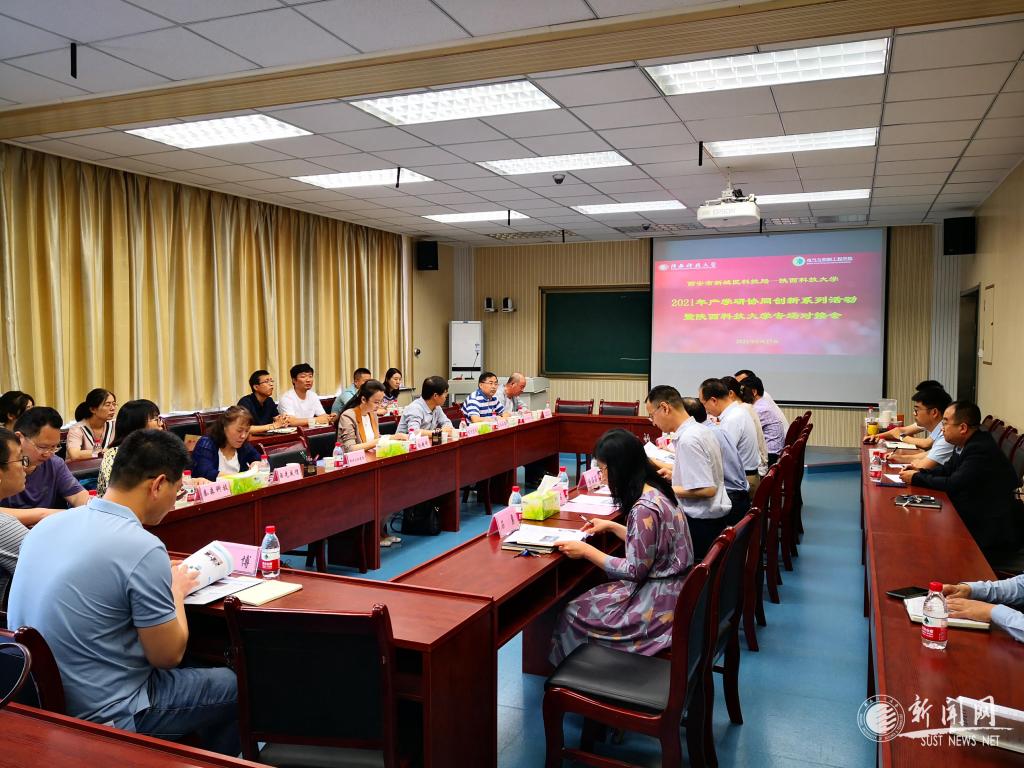 5月27日上午,西安市新城區(qū)科技局局長趙超妍攜西北工業(yè)集團有限公司等8家新城區(qū)企業(yè)來我校調(diào)研交流,并開展“西安市新城區(qū)科技局——陜西科技大學(xué)2021年產(chǎn)學(xué)研協(xié)同創(chuàng)新系列活動暨陜西科技大學(xué)專場對接會”活動。副校長黃劍鋒出席會議,前沿院、電控學(xué)院負責(zé)人及相關(guān)科研團隊參加了對接會,會議由電控學(xué)院院長湯偉主持。