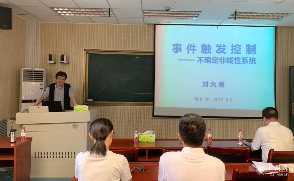 劉允剛教授作了“事件觸發(fā)控制前沿及研究現(xiàn)狀介紹”的學(xué)術(shù)報(bào)告。他首先從網(wǎng)絡(luò)化系統(tǒng)與協(xié)同控制的實(shí)際問(wèn)題出發(fā),闡述了協(xié)同控制系統(tǒng)中對(duì)“強(qiáng)適應(yīng),高可靠,高能效”控制器的需求,詳細(xì)介紹了事件觸發(fā)控制理論的研究?jī)?nèi)容、設(shè)計(jì)方法、分析手段以及具有代表性的論文研究進(jìn)展和研究結(jié)果。