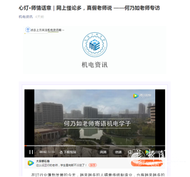 機電工程學(xué)院開設(shè)線上專欄傳遞英雄力量。機電學(xué)院利用微信公眾號開設(shè)“英雄故事接力跑”專欄,教工及學(xué)生黨支部黨員全員參與,以圖文、音頻等方式,接力講述百年黨史中的英雄人物,預(yù)計在機電資訊及易班平臺持續(xù)推送100位英雄人物故事,激勵全院師生從百年黨史中汲取智慧和力量。同時,打造以“點亮學(xué)生理想的燈,照亮學(xué)生前行的路”為宗旨的“心燈”線上欄目,先后邀請多位思政教師、專業(yè)課教師和優(yōu)秀學(xué)生代表,以線上短視頻形式為大學(xué)生厘清模糊認識、解開思想疙瘩。