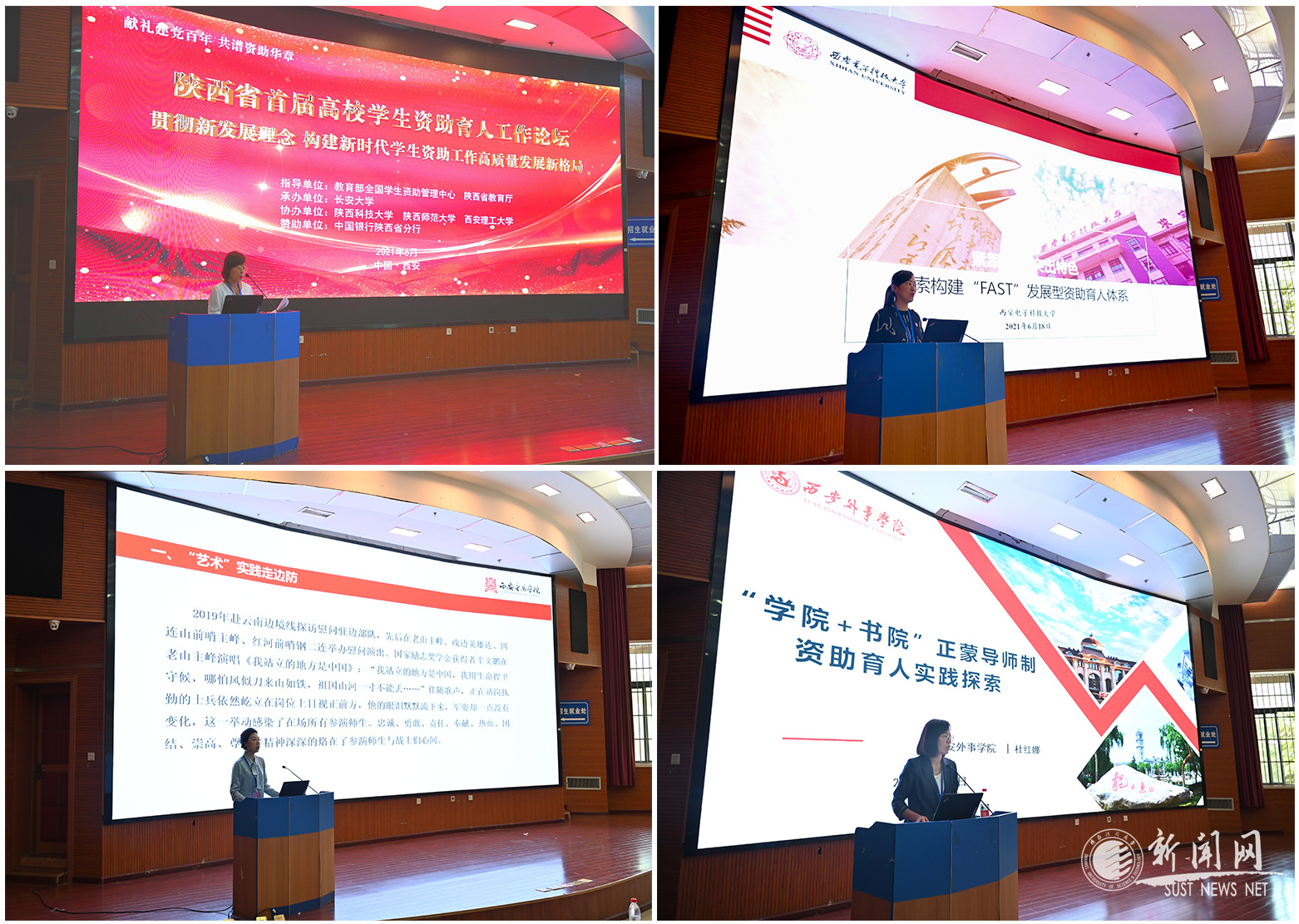 西安電子科技大學(xué)學(xué)生處副處長、資助中心主任盧琳,西安音樂學(xué)院學(xué)工部部長、資助中心主任張津波,西安外事學(xué)院學(xué)工部副部長杜紅娜分別就學(xué)校資助育人的特色做法和經(jīng)驗進行了分享介紹。