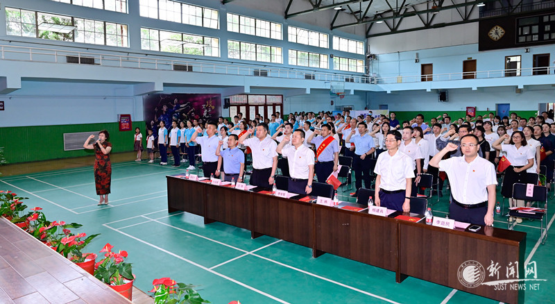 為慶祝中國共產(chǎn)黨成立100周年,回顧黨的光輝歷程,緬懷革命先烈的豐功偉業(yè),扎實(shí)推進(jìn)黨史學(xué)習(xí)教育,表彰先進(jìn)樹立典型,鼓舞干勁再創(chuàng)輝煌,6月25日下午,附中在文體館隆重舉行慶祝建黨100周年暨“七一”表彰大會(huì)。副校長李學(xué)軍出席大會(huì),附中班子成員、教工黨支部書記及全體科級(jí)以上干部、全體共產(chǎn)黨員、入黨積極分子,馬克思主義學(xué)院參演大學(xué)生及附中少先隊(duì)員和共青團(tuán)員代表共計(jì)230余人參加會(huì)議。