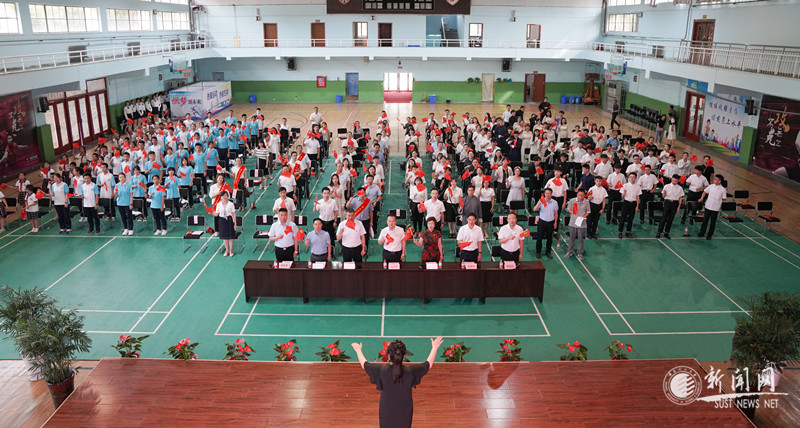 大會(huì)第二篇章為“七一”慶祝大會(huì)。伴隨著由附中17名黨員教師代表參演的歌伴舞《共圓中國夢》,讓全場師生感受到了中華兒女奮發(fā)向上、共筑中國夢的豪情。