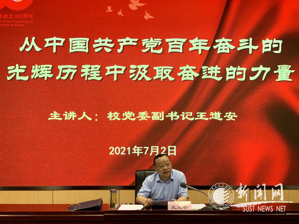 7月2日,校黨委副書記王道安以“從中國共產(chǎn)黨百年奮斗的光輝歷程中汲取奮進的力量”為題,為食品生物與工程學(xué)院學(xué)生講授了一堂精彩生動的思政課。