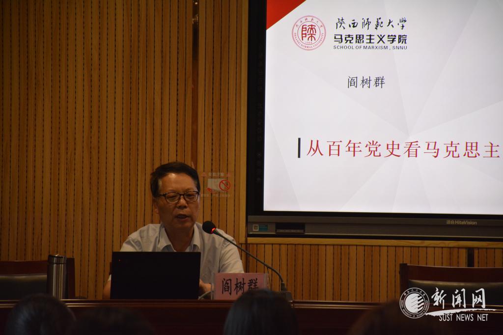 為深入學習領會習近平總書記“七一”重要講話精神,教育引導師生切實把思想和行動統(tǒng)一到講話精神上來,馬克思主義學院邀請陜西師范大學閻樹群教授以“從百年黨史看馬克思主義為什么行”為題,深入解讀“七一”重要講話精神。專題報告由馬克思主義學院院長吳明永主持。
