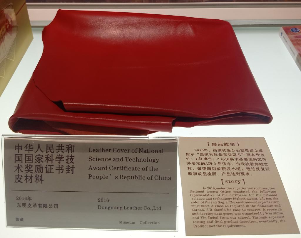 一塊正紅色的皮子證書,鮮明亮麗,陳列在陜西科技大學(xué)校史館(中國輕工業(yè)博物館)展柜中。在陽光下,它的顏色與國旗顏色完全一樣,因而得名“國旗紅”。也因這一特性及其100多項理化指標(biāo)全優(yōu)、著色穩(wěn)定耐久,該皮子一舉中標(biāo),成為國家科技進步特等獎和一等獎證書的封皮。這,是陜科大第一代“西遷教師”魏世林退休后帶領(lǐng)團隊開發(fā)出的科研成果,如今已成為學(xué)校師生重溫、學(xué)習(xí)“三創(chuàng)兩遷”辦學(xué)歷史的生動教材。那抹永不褪色的紅,折射的正是陜科大人“姓黨愛國為人民”的本色。