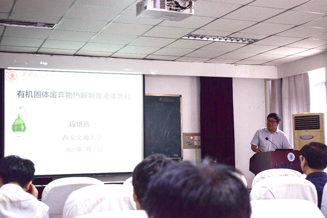 段培高教授結(jié)合當(dāng)今能源與環(huán)境問(wèn)題的重要背景,詳細(xì)介紹了有機(jī)固體廢棄物中生物質(zhì)能利用的深刻意義和主要途徑,并通過(guò)實(shí)驗(yàn)研究過(guò)程介紹及結(jié)果討論,闡述了以有機(jī)廢棄物為原料制備液體燃料的研究重點(diǎn)和應(yīng)用前景。