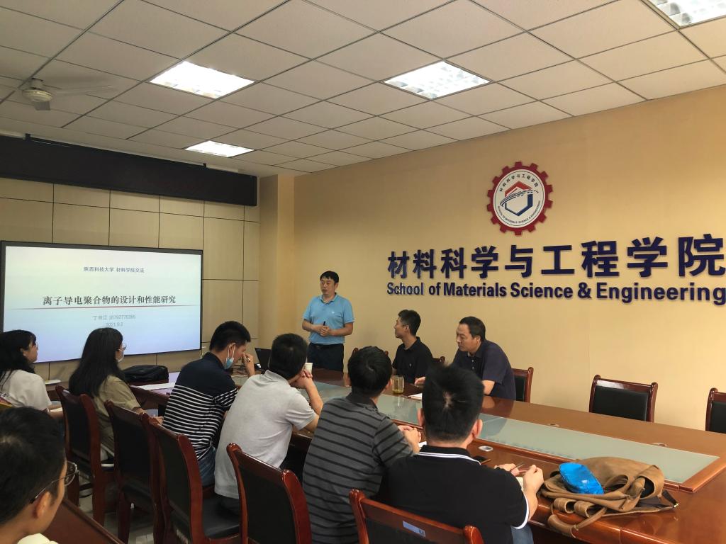 丁書(shū)江教授首先介紹了基于離子導(dǎo)電聚合物的儲(chǔ)能和傳感器多相多組分的高分子復(fù)合體系,分析了組分之間的相容性和協(xié)同作用對(duì)復(fù)合材料的性能的影響和應(yīng)用范圍。著重介紹了圍繞離子導(dǎo)電聚合物離子傳輸機(jī)制,功能拓展,性能應(yīng)用為研究主線,將高分子材料與電化學(xué)領(lǐng)域交叉融合,提出離子導(dǎo)電彈性體概念,獲得了透明的離子導(dǎo)電彈性體。并針對(duì)柔性鋰硫電池存在的多硫離子穿梭效應(yīng)和各組件在反復(fù)彎折中產(chǎn)生空隙和錯(cuò)位的問(wèn)題,提出構(gòu)筑正極、集流體和隔膜的“三位一體”柔性纖維膜的新策略。會(huì)后丁教授與與會(huì)老師及研究生就科學(xué)研究工作進(jìn)行了深入交流與討論。
