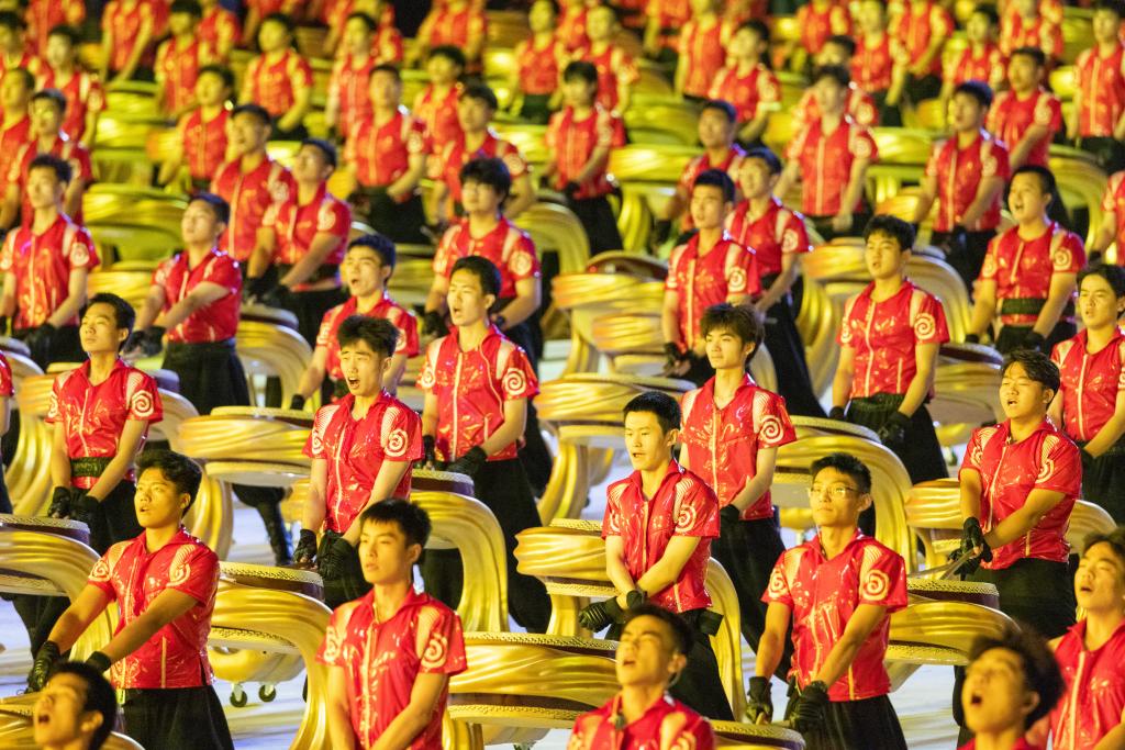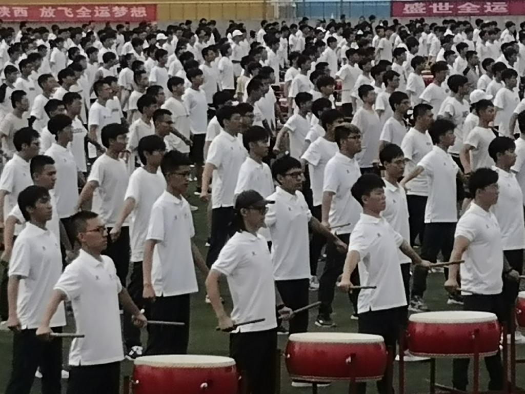 自開(kāi)幕式表演群眾演員訓(xùn)練工作開(kāi)始以來(lái),面對(duì)排練工作的任務(wù)重時(shí)間緊,參演師生克服困難,服從安排,犧牲整個(gè)暑期休息時(shí)間,以飽滿的熱情、認(rèn)真的態(tài)度全身心投入到演出排練。作為業(yè)余選手,大多數(shù)人都是第一次接觸打鼓訓(xùn)練,學(xué)生祝海辰說(shuō):本來(lái)以為只要把握好節(jié)奏,就算是合格了。但開(kāi)始幾次訓(xùn)練后胳膊就開(kāi)始感到酸痛無(wú)比,即使是睡覺(jué)也像是有數(shù)十斤的重石壓在臂膀,經(jīng)過(guò)不斷適應(yīng),才慢慢緩解下來(lái)。披星戴月、汗流浹背是訓(xùn)練過(guò)程中的常態(tài),炎熱天氣下的堅(jiān)守、浸染汗水的笑臉、陽(yáng)光拂過(guò)的黝黑都凝聚成了十四運(yùn)會(huì)開(kāi)幕式舞臺(tái)上的動(dòng)作規(guī)范,鏗鏘有力,豪氣沖天,陜科大學(xué)子用頑強(qiáng)的毅力高質(zhì)量完成了演出任務(wù),展現(xiàn)著陜科大人不怕吃苦、甘于奉獻(xiàn)、愛(ài)國(guó)愛(ài)校的精神風(fēng)貌。